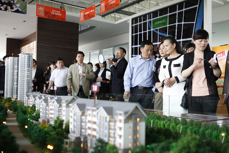 參觀完后,大家乘車前往舒格蘭。沿著風光旖旎的濱河西路,公司車輛與員工車輛組成了長長的車隊,蔚為壯觀。來到舒格蘭。吳萬源經(jīng)理向大家介紹了舒格蘭項目的位置和北城新區(qū)的城市規(guī)劃。來到景觀示范區(qū),大家參觀了樹木叢生、綠草如茵的園林景觀以及奢華典雅的樣板間。