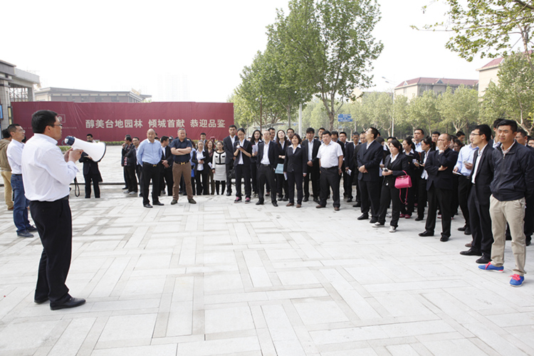 上午9時,在公司副董事長孫鵬先生的帶領下,大家來到金泰華府項目?!皻g迎公司領導和各位同事來到金泰華府項目!”華府項目部經(jīng)理姬常寶手持擴音器表示歡迎。啟翔金泰華府項目經(jīng)理吳維龍向大家詳細介紹了金雀山的位置、歷史等情況。跟隨工作人員,大家還參觀了華府沿街商業(yè)、臺地園林景觀及清水樣板間。